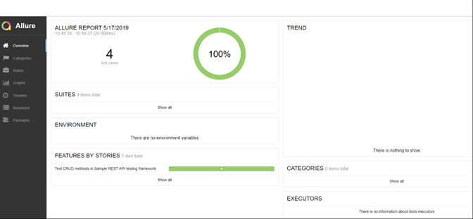 사용자는 항상 더 읽기 쉽고보기 쉬운 형식으로 테스트 결과를 보는 것을 선호하므로 Allure의 도움을 받아 HTML 형식으로 보고서를 작성합시다.