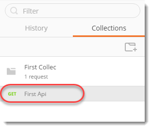 5. 사이드 바에서 Collections 탭을 선택 하면 모든 컬렉션 폴더가 표시 되고 First Collec 을 선택한 다음 First Collec 탭 에서 First Api 를 선택 합니다.