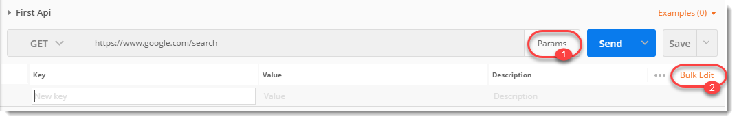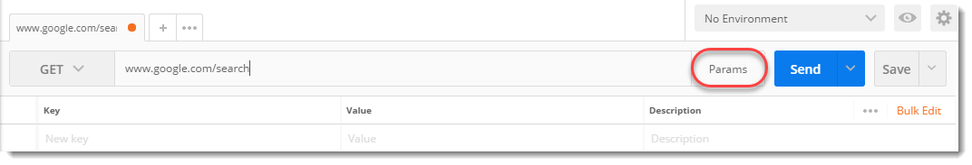 1. URL www.google.com/search 로 Postman에서 GET 요청을 준비한 다음 Params 를 클릭하십시오 .