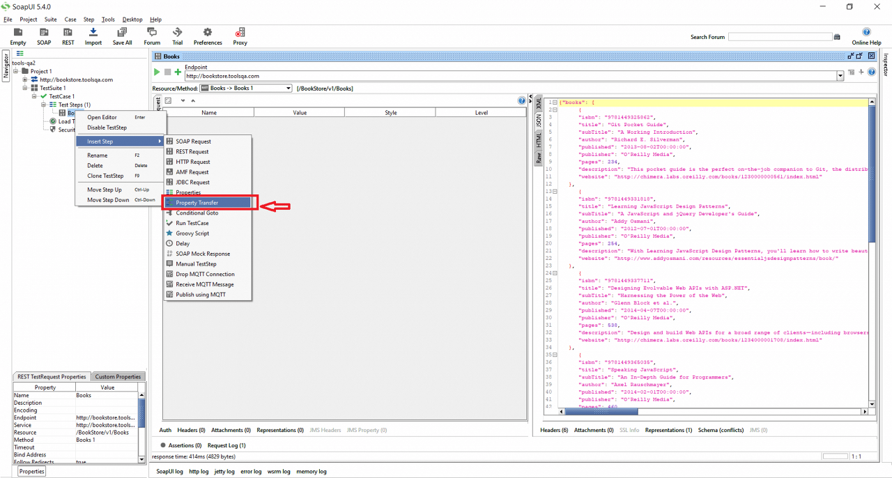 1 단계 − TestStep을 선택하고 오른쪽 클릭 → Insert Step → Property Transfer.