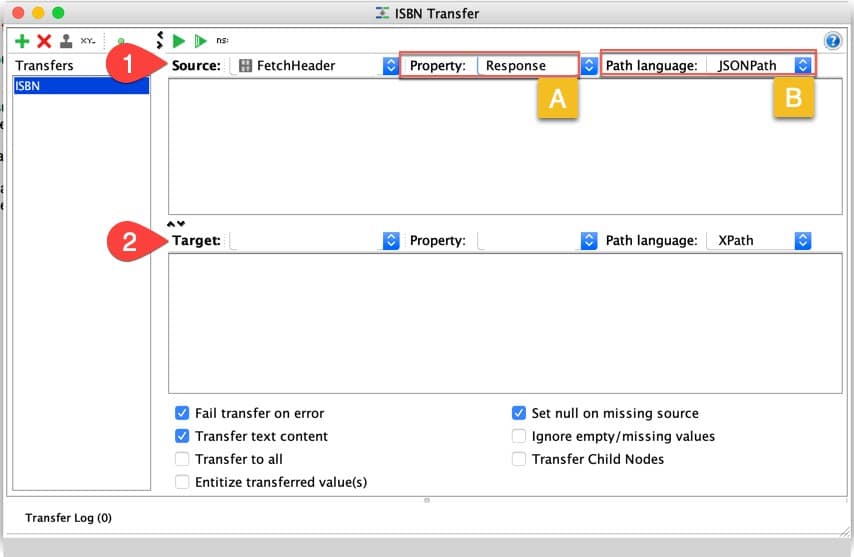 Property Transfer를 추가 했으므로 이러한 값을 어떻게 사용할 수 있는지 살펴보겠습니다.한때 속성 전송 또한이 발생, 당신은 두 가지 영역이 있음을 볼 수 있습니다 소스 및 대상 단계로 표시 1 2.이것들을 자세히 이해합시다.
