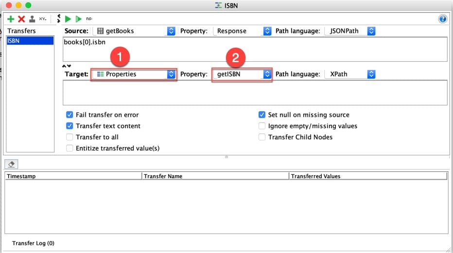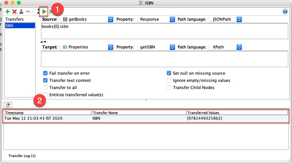 위에 표시된 대로TestStep의 이름을 “ISBN Transfer” 로 사용하고 있습니다.