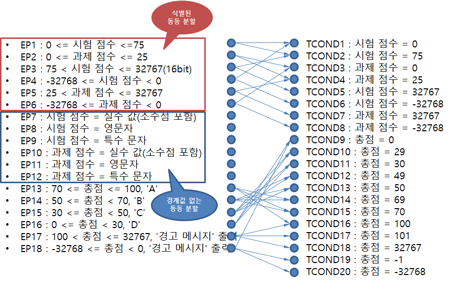 따라서 EP3부터 EP6는 다음과 같이 더 상세하게 정의 할수 있다. - EP3 : 75 < 시험 점수 <= 32767(16bit)