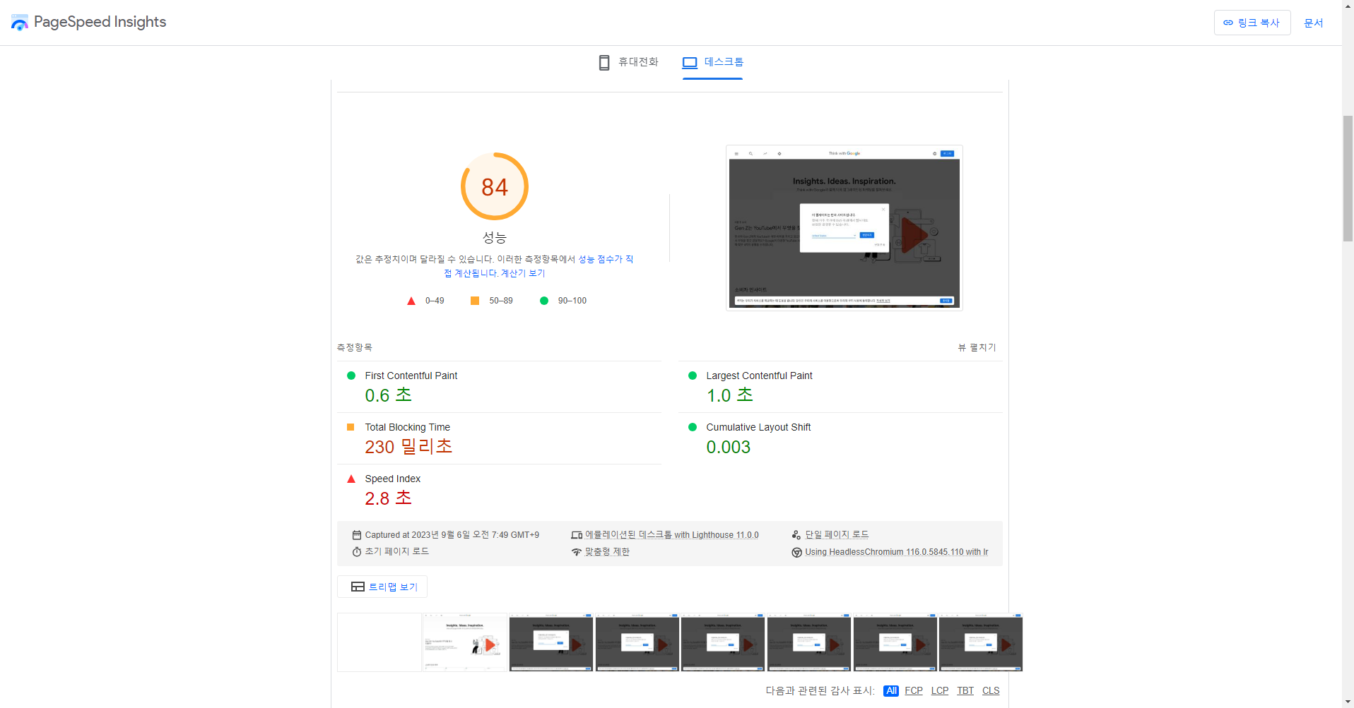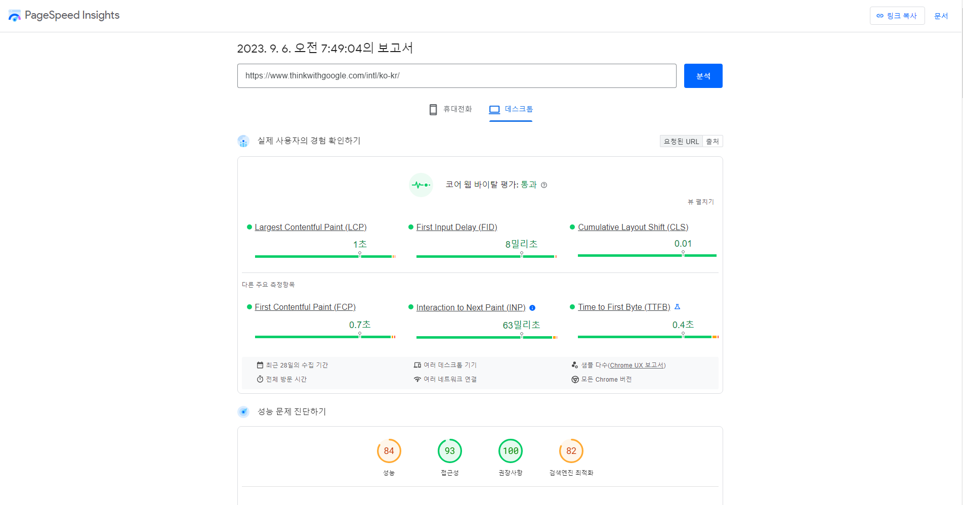 - PageSpeed Insights로 로그인을 시도할 때 웹사이트의 보안 정책 및 Captcha 등에 의해 테스트가 차단될 수 있습니다.