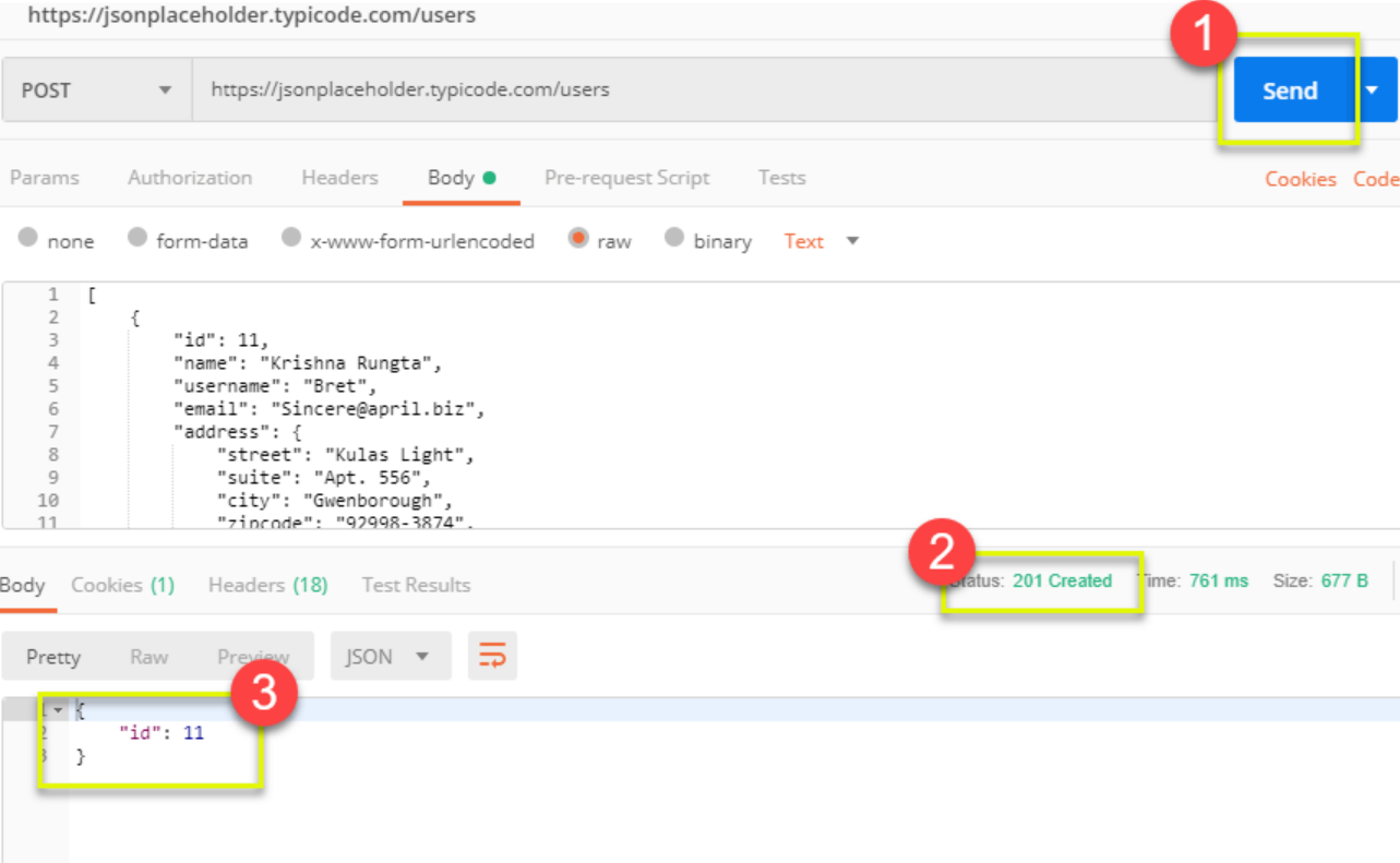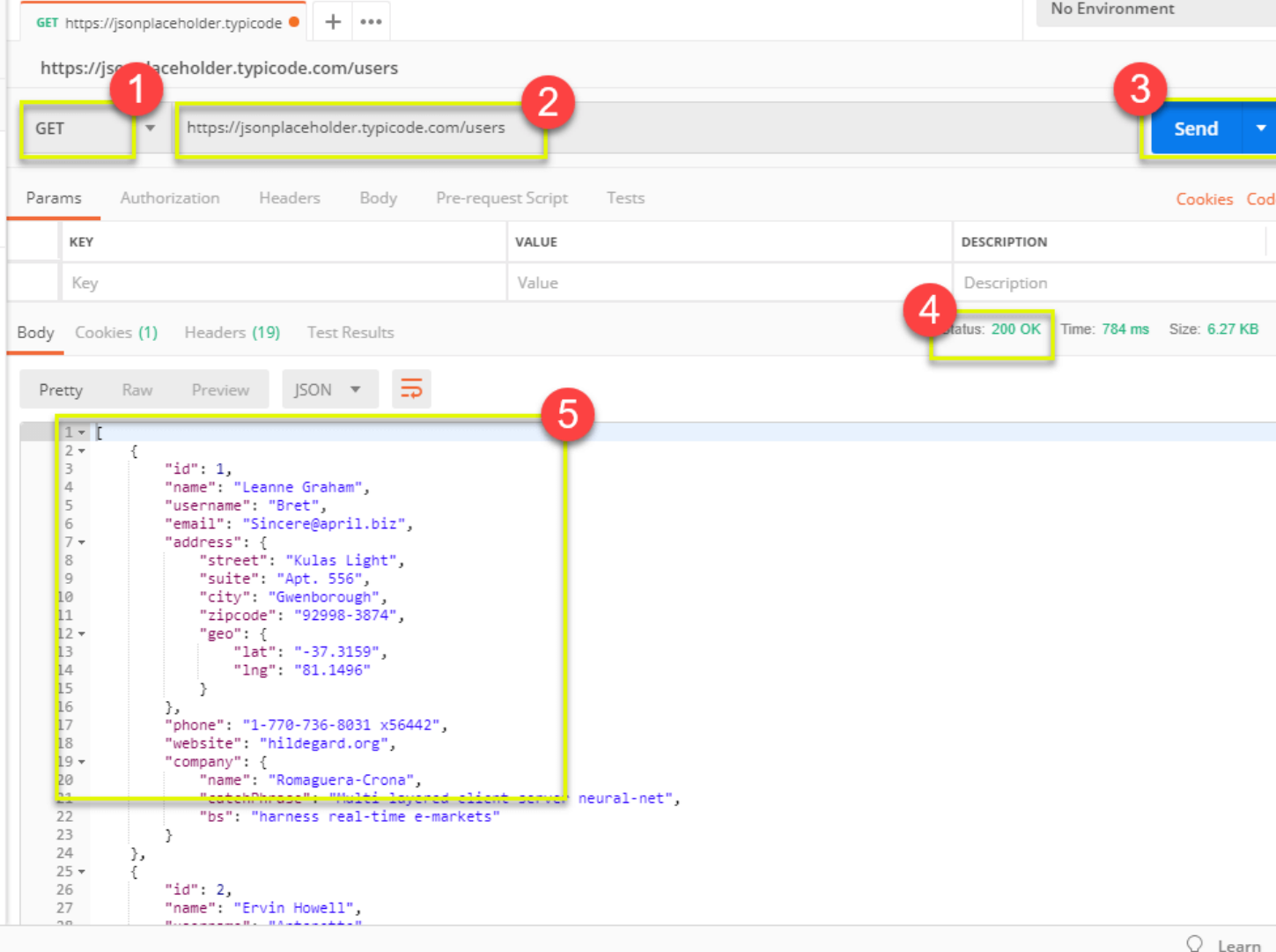 - 요청 URL에 다음 링크를 입력하세요: https://jsonplaceholder.typicode.com/users