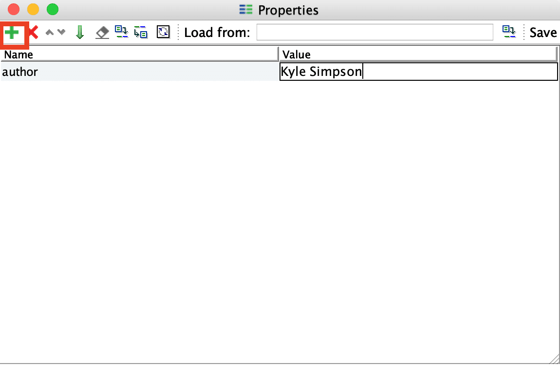4. 새 속성을 추가하려면 강조 표시된 " + "버튼을 클릭합니다. 위의 스냅 샷에서 언급했듯이 , BookStore API의 응답에서 " Kyle Simpson " 과 같은 작성자 및 값인 속성의 이름을 사용할 수 있습니다.