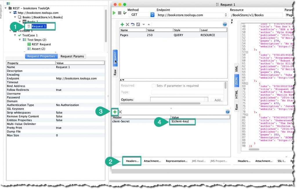 SoapUI 작업 공간에 두 개의 WebService가 있다고 가정합니다. 하나는 SOAP 프로젝트이고 다른 하나는 REST 프로젝트입니다. 서버를 요청하려면 클라이언트 보안 이 필요하며 두 서비스에서클라이언트 보안을