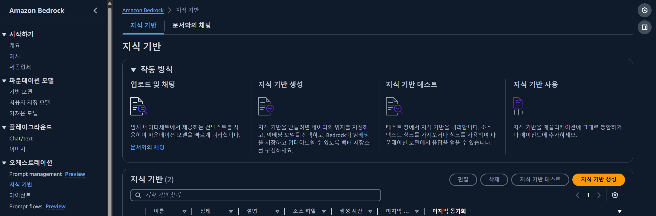 Amazon Bedrock에서는 콘솔에 문서를 직접 업로드할 수 있습니다.